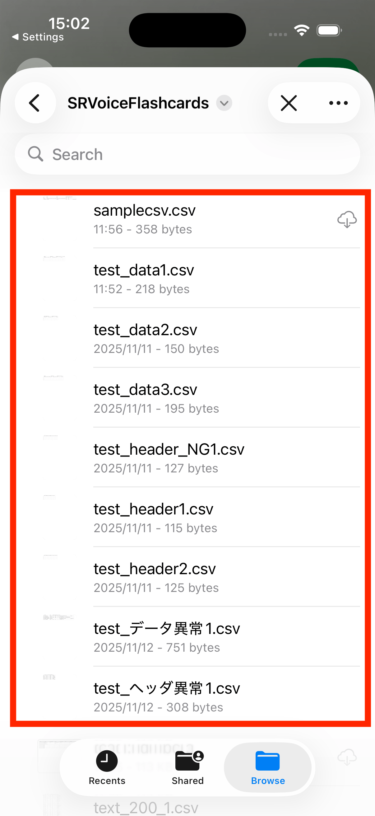 A system window will appear, allowing you to choose your prepared CSV file from your cloud storage (e.g., iCloud Drive, Dropbox). Tap the file to select it.