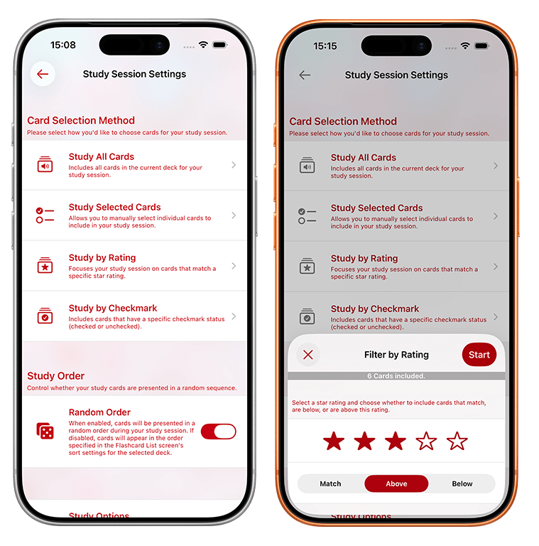Target Your Weak Spots: Use the 5-Star rating system to filter and review only your weakest spots (Statuses can filter which cards you study.). Stop wasting time on what you already know!